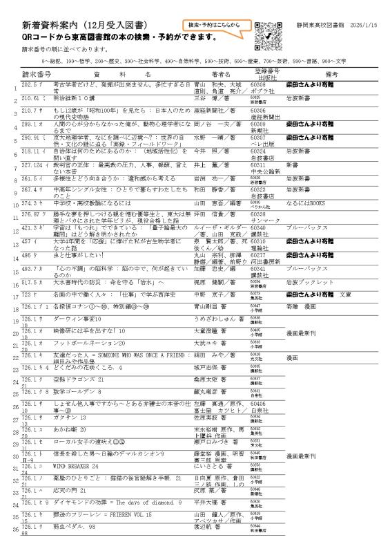 図書だより1月号と新着案内です。