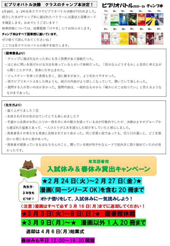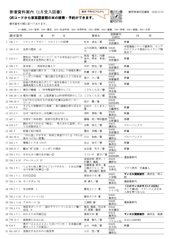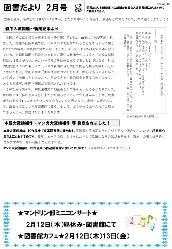 図書だより2月号と新着案内です。