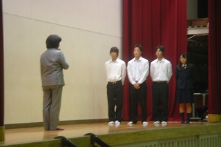 陸上部・水泳部・卓球部・男女バスケットボール部・男子バレー部・女子テニス部の表彰がありました。