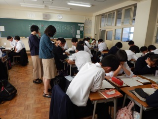1年国語総合授業で公開授業を行いました。「古文で作文!みんなで鑑賞!」をテーマに、苦手意識を持つ生徒が増えてくるなかで、楽しく古文と関わり、今後の学習意識の向上に繋がっていくことをねらった授業を展開しました。