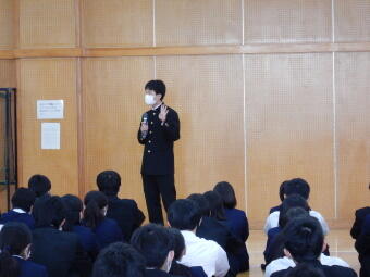 3月19日の終業式の後、1年生の学年集会がありました。各クラスの代表者がスピーチをした後、進路担当や学年主任から話がありました。